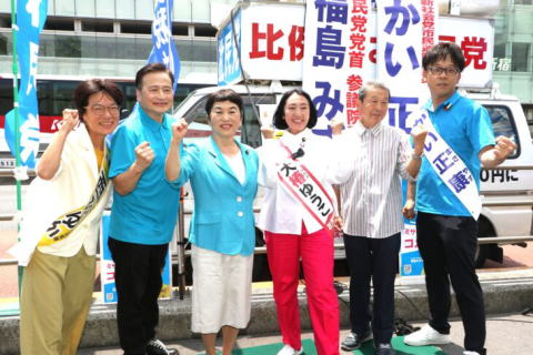 参院選が公示され、福島みずほ社民党党首が力強く第一声をあげた。